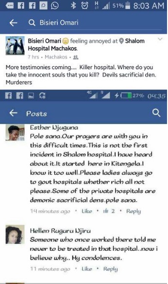Shalom Community Hospital in Kitengela has been put on the spot for causing the death of innocent patients.